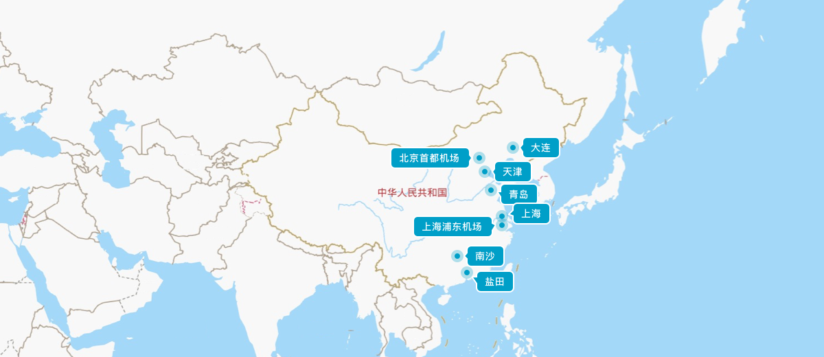 主營口岸為:天津、上海、大連、青島、鹽田、南沙等海港,北京首都機(jī)場及上海浦東機(jī)場兩個(gè)空港。
